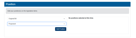 Choose original Bill and select Proponent. Once you do this, you must click Add Position before moving forward.